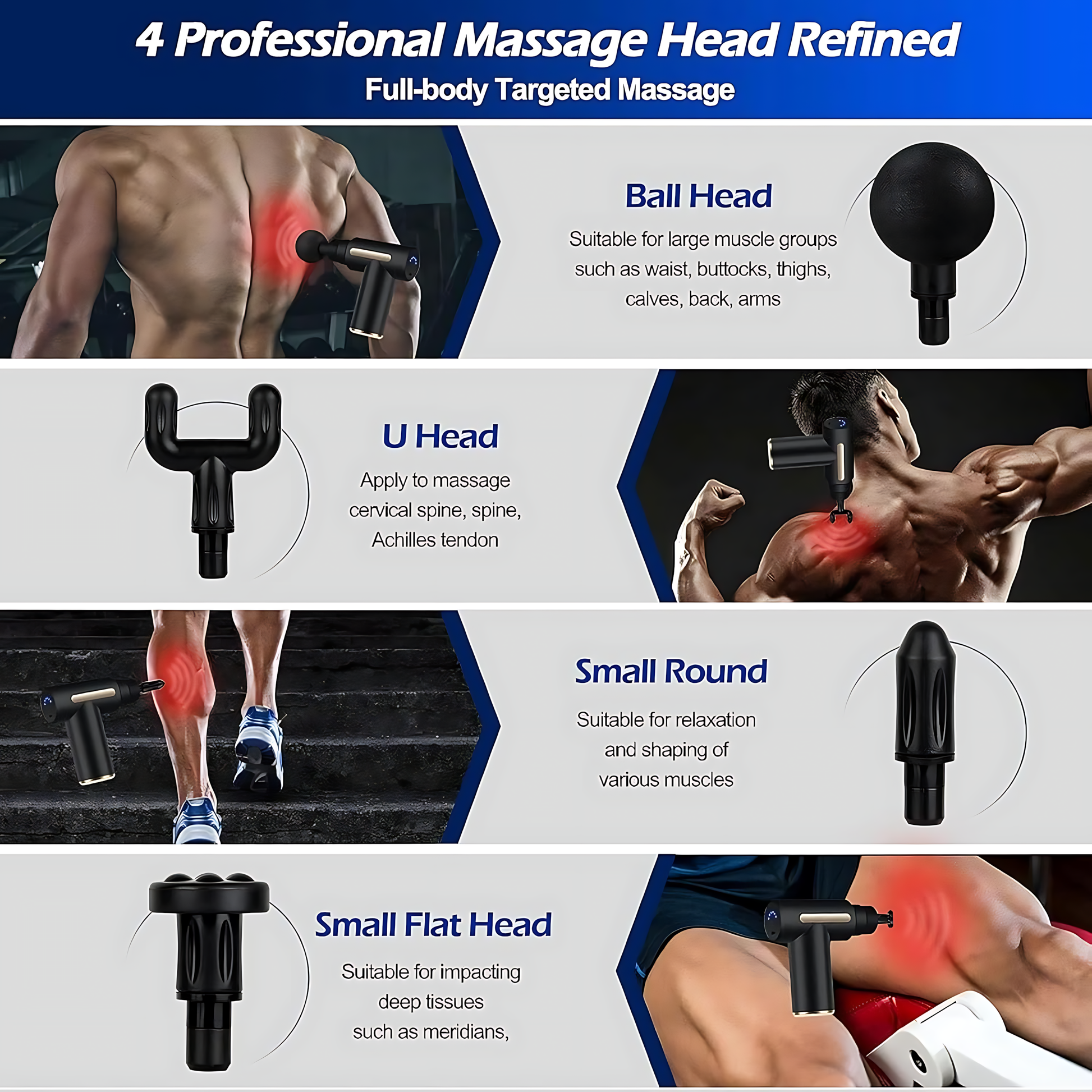 الميزة الأهم هي راحة العضلات الفورية. باستخدام مسدس التدليك هذا، يمكنك الضغط مباشرةً على المنطقة التي تُسبب تشنجات أو ألمًا، مما يُوفر راحة فورية.