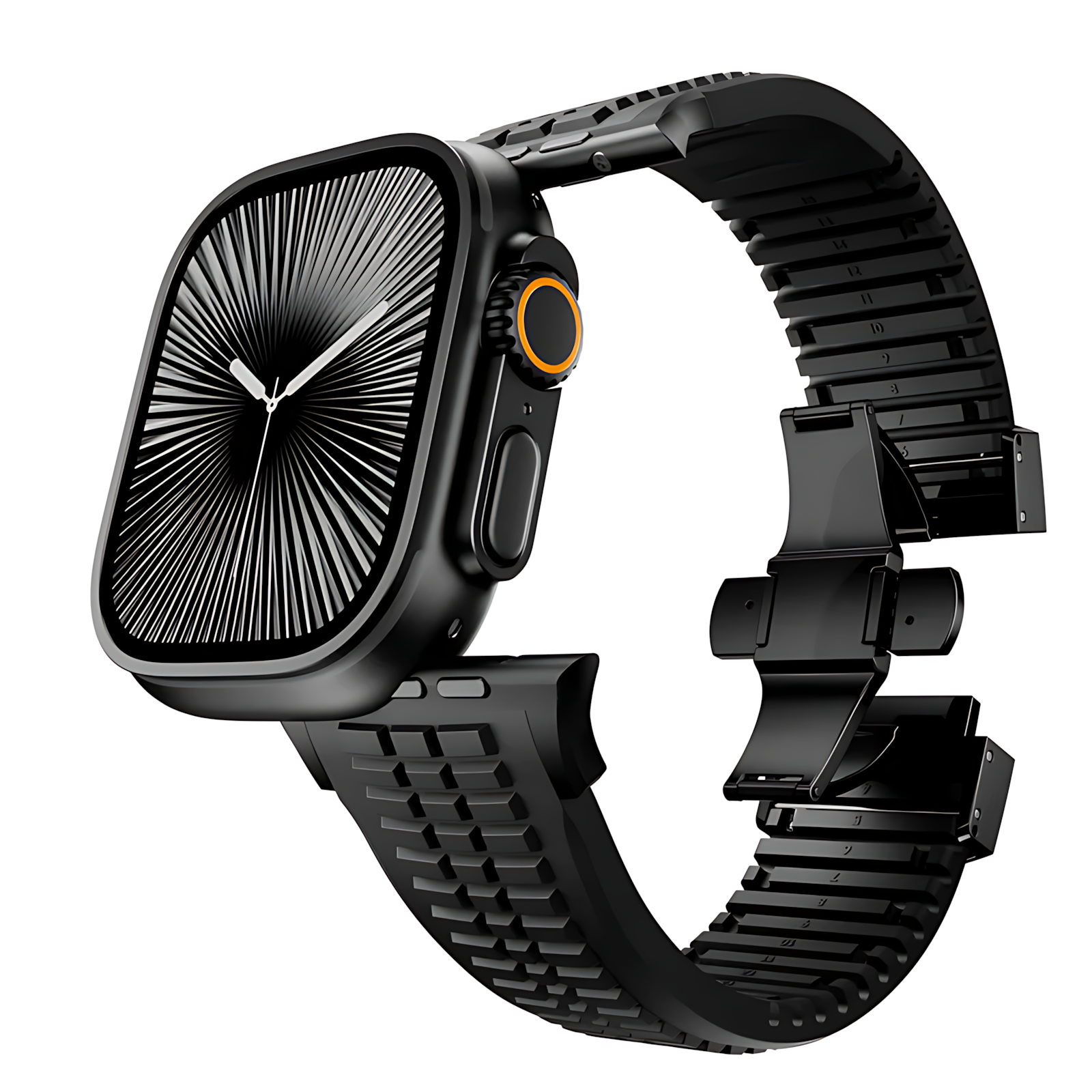 سوار السيليكون Supertank لساعة آبل يمنحك متانة استثنائية وراحة فائقة بفضل صناعته من السيليكون عالي الجودة. تم تصميمه ليمنحك ثباتًا مثاليًا وسهولة في التعديل، كما أنه يتحمل الاستخدام اليومي والرطوبة، مما يجعله مثاليًا لكل من التمارين الرياضية المكثفة والأجواء المهنية.