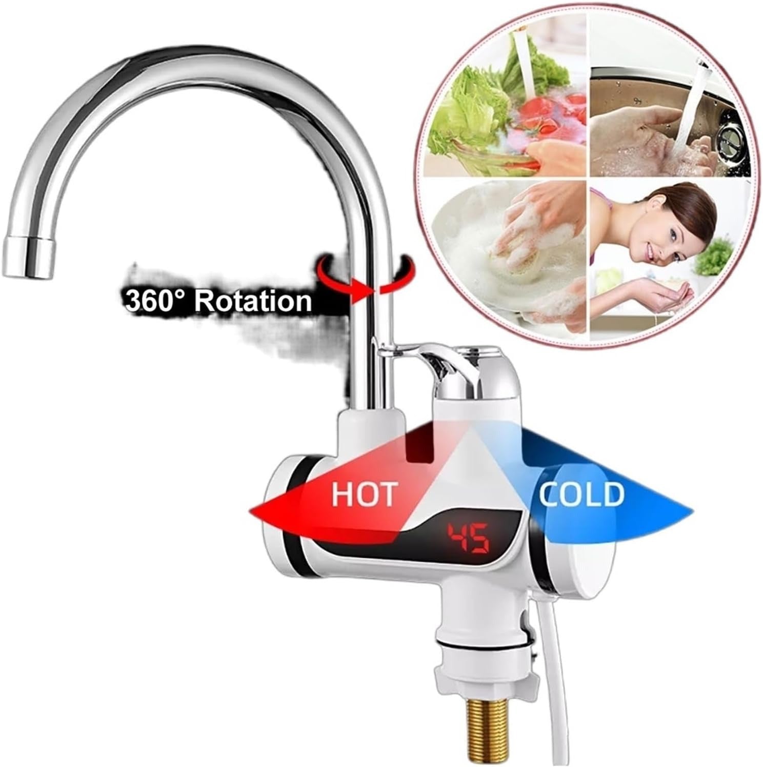 استمتع بماء ساخن بدرجة حرارة تتراوح بين 30–60°C فورًا بمجرد فتح الصنبور — مثالي للمطبخ والحمام.