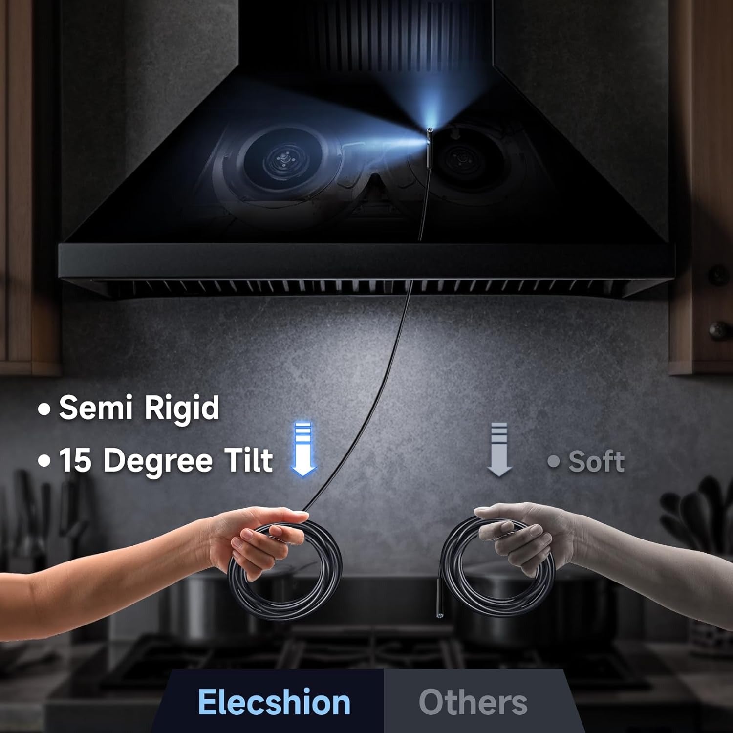 يمنحك الكابل شبه الصلب توازناً مثالياً بين المرونة والثبات، مما يجعل التنقل سهلاً وسلساً. بفضل تصنيف الحماية IP67، يمكن للكاميرا العمل تحت الماء حتى عمق 1 متر لمدة ساعة، مما يجعلها مثالية لفحص السباكة والمواسير والمصارف.