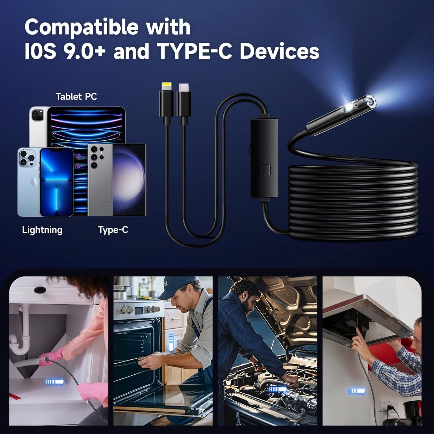 أداة مثالية للفحص والتشخيص في السيارات، الصيانة المنزلية، فحص أنظمة التهوية والتكييف، وحتى الكشف عن العفن خلف الجدران. بفضل الإضاءة LED القابلة للتعديل، ستحصل دائماً على رؤية واضحة حتى في الأماكن المظلمة أو الضيقة.