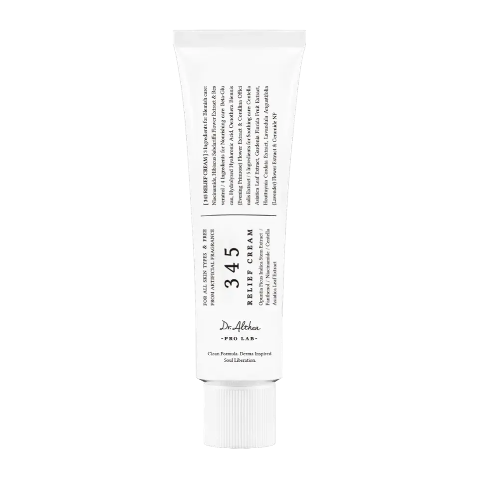 Dr. Althea 345 Relief Cream مصمّم بتركيبة لطيفة وفعّالة تعتمد على 3 مكوّنات أساسية لتهدئة البشرة، 4 أنواع من الترطيب العميق، و5 عناصر تغذية تُعيد التوازن والنضارة لبشرتك.