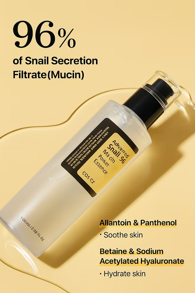 تمت صياغته بتركيبة تحتوي على %96 من مخاط الحلزون ليمنح بشرتك فوائد ترميم قوية تساعد على استعادة الترطيب، وتحسين المرونة، وتنعيم الملمس.
